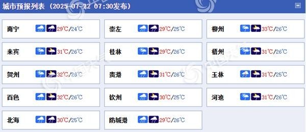 广西各城市预报。(来源:中国天气网)