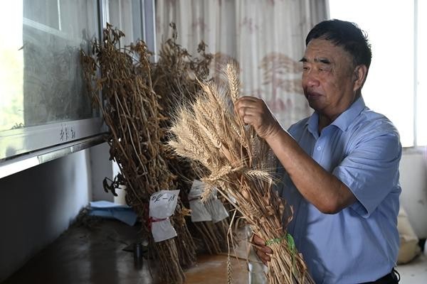 7月20日,徐淙祥在家中察看用于研究的小麦样品。新华社记者 黄博涵/摄