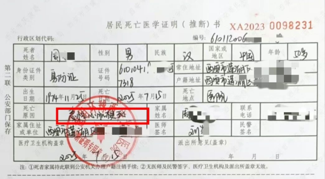 死亡医学证明显示