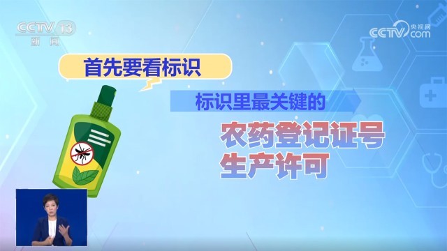 专家介绍,首先要看标识,标识里边最关键的就是农药登记证号和生产许可,这就代表驱蚊产品具有驱避效果,并且对人类的危害刺激是在安全值范围内。