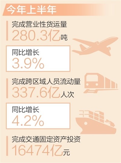 货运量平稳增长。上半年,完成营业性货运量280.3亿吨,同比增长3.9%。分方式看,铁路、公路、水路、民航货运量同比分别增长1.8%、4.0%、4.3%和14.6%,其中,中国航运企业完成的远洋货运量同比增长9.4%。