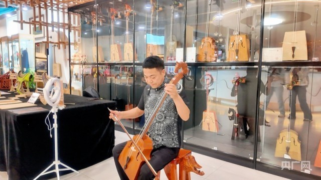 “我们最开始是两个人做,到现在已经有了20名员工,80%都是我们村里的农牧民。包括我在内现在有四名大学生,我们每年都给村里捐赠一些乐器,再找老师给农牧民免费教授马头琴的演奏技艺,包括来这里展售,也是希望通过马头琴制作技艺让更多的人了解蒙古族的文化。”