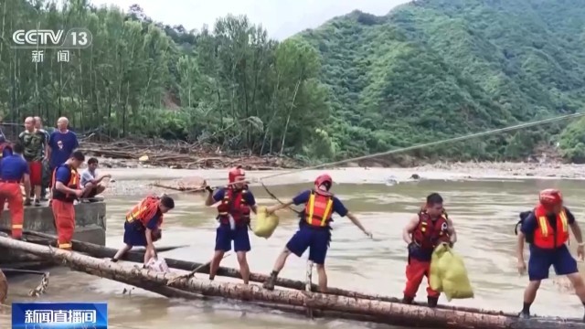 持续强降雨导致北京怀柔区部分山区通信中断,道路损毁严重,这给救援工作带来很大的困难,在灾情最重的琉璃庙镇及周边村落,救援人员在断桥和悬崖上架起“绳索”,为受困人员搭建生命通道。
