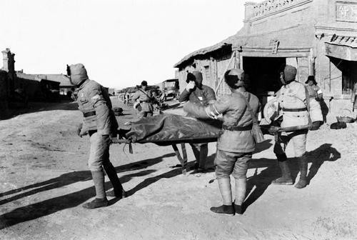 运送伤员。方大曾 摄(方大曾纪念室供图)
