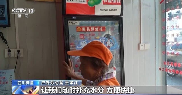 同时,梓潼县55个工会驿站也24小时开放,为户外劳动者搭建“清凉港湾”。在长卿镇南桥社区“工会驿站”,工作人员表示,他们每天都会向冷藏柜里补充矿泉水,供户外劳动者免费饮用。此外,驿站内还提供藿香正气水等降温药品。