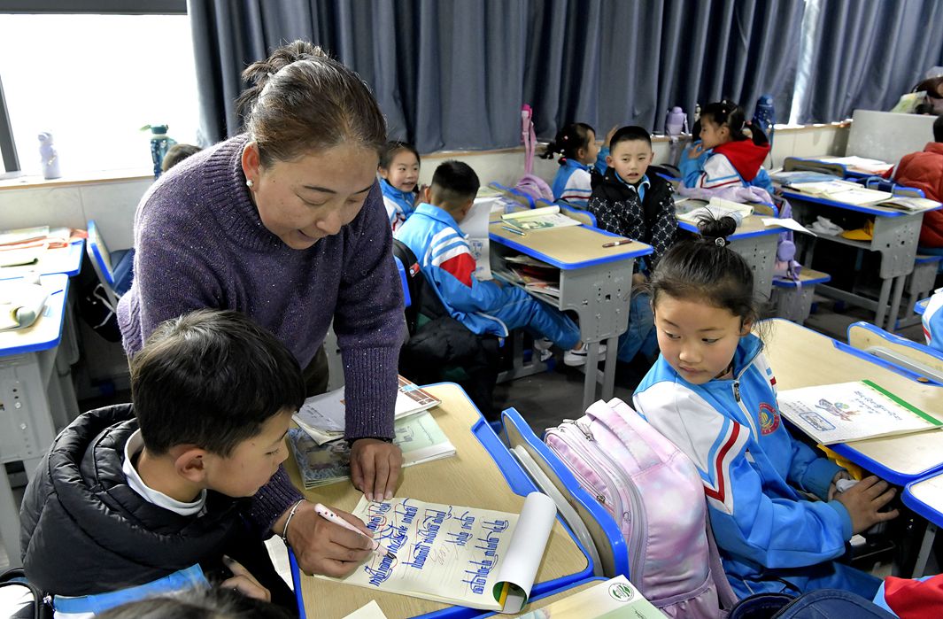 西藏拉萨市第一小学老师强珍正在上藏语文课 图片来源:视觉中国