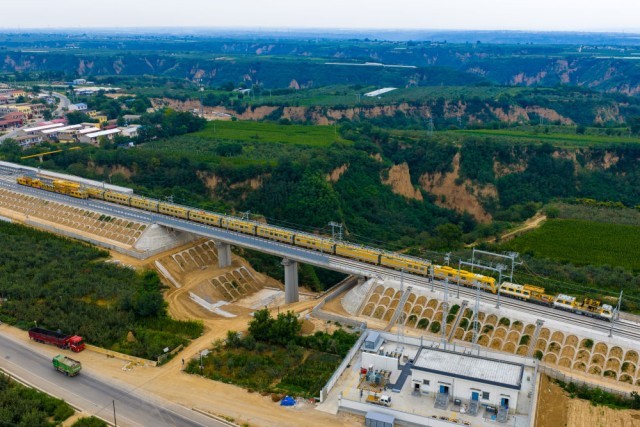 西延高铁正在有序推进电气化设备的精调。(中国铁路西安局集团有限公司供图)