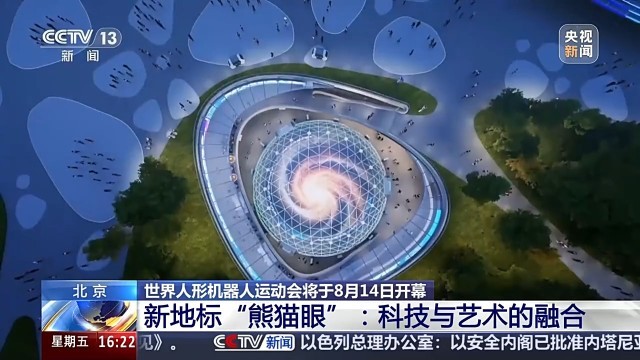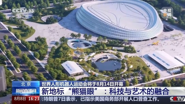 总台记者 张河运:我现在所在的位置就是北京一座新的地标性建筑——全球首个人形机器人赛训基地,备战世界人形机器人运动会的队伍,正在这里进行赛前的训练和调试工作。这个赛训基地被称作“熊猫眼”,为什么是“熊猫眼”呢?我们可以从外形上看一下这个赛训基地。