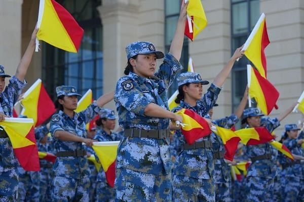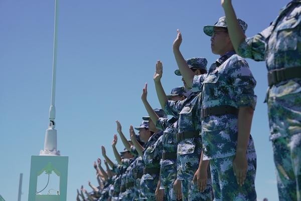 就在她们一同剪短头发的前一天,由教育部、军委国防动员部共同主办的第十届全国学生军事训练营,在海军潜艇学院正式开营。本届训练营以“踏浪海疆,逐梦深蓝”为主题,训练内容依据学生军训大纲设置,立足海军军种特色,分为军事理论学习、军事技能训练、军事观摩体验和军事文化熏陶四大板块。