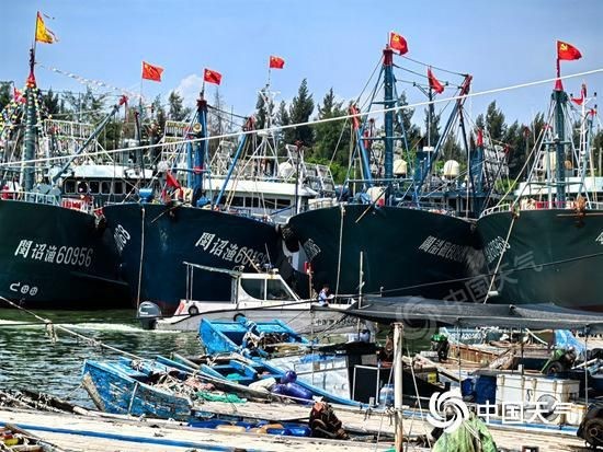图为8月12日福建漳州诏安县提前部署台风防范工作,沿海渔船全部进港避风。(图/陈梅峰 文/沈逸婷)