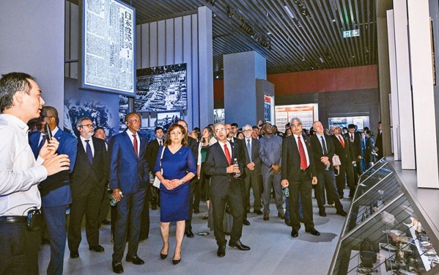 2025年7月17日,来自112个驻华使馆和10个国际组织的160多位驻华使节和外交官到中国人民抗日战争纪念馆参观《为了民族解放与世界和平》主题展览。 新华社记者 陈晔华/摄