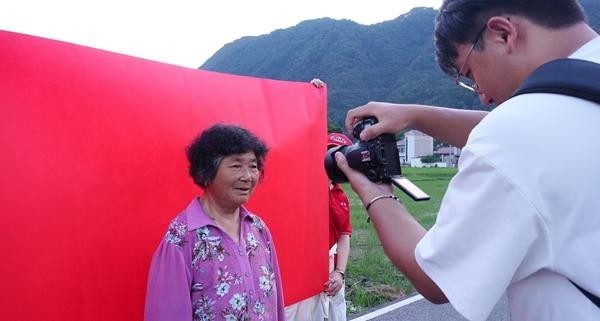 7月,安徽省宣城市旌德县玉溪村,安徽师范大学新闻与传播学院社会实践队员正在给老人拍摄证件照。