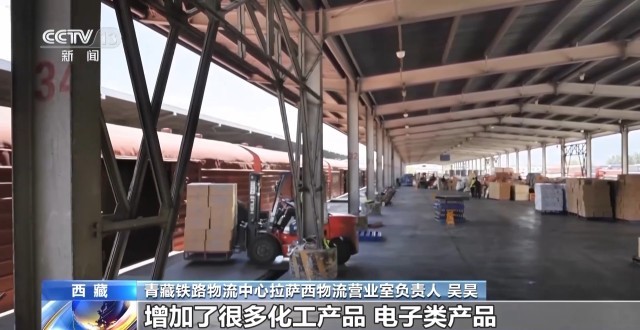 青藏铁路物流中心拉萨西物流营业室负责人 吴昊:以前我们这边到达量还是比较单一的,也就是一些粮食、饮料、建材之类的,现在到达的物品比较多元,增加了很多化工产品、电子类产品。
