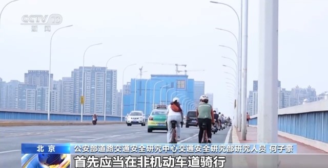 公安部道路交通安全研究中心交通安全研究部研究人员 何子豪:孩子大多是第一次骑车上路,家长应当叮嘱孩子一些骑行的注意事项。首先,骑行应当在非机动车道,如果没有非机动车道应当靠右骑行。其次,在过马路的时候需要在人行横道上下车推行。骑行需要观察路况,遵守交通规则。