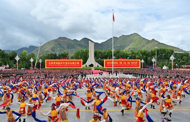 8月21日,西藏自治区成立60周年庆祝大会在拉萨举行。