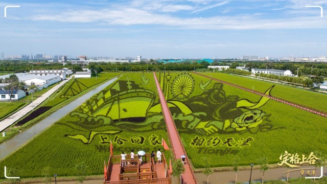 天津市津南区小站镇会馆村的一幅“上合”主题稻田画。