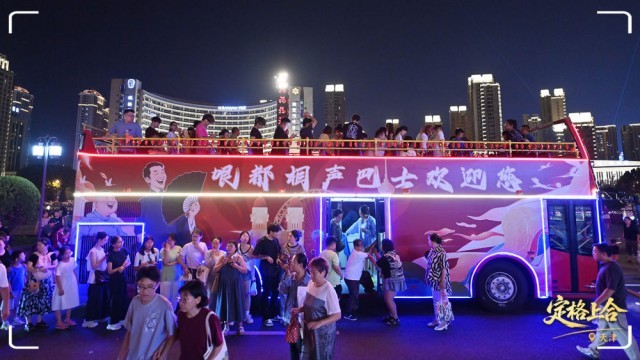 市民游客排队准备登上“相声巴士”。