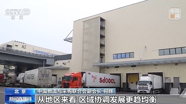 中国物流与采购联合会副会长 何辉:从地区来看,区域协调发展更趋均衡。在国家政策支持下和资源禀赋的支撑下,中西部地区的物流增长快于全国平均水平。
