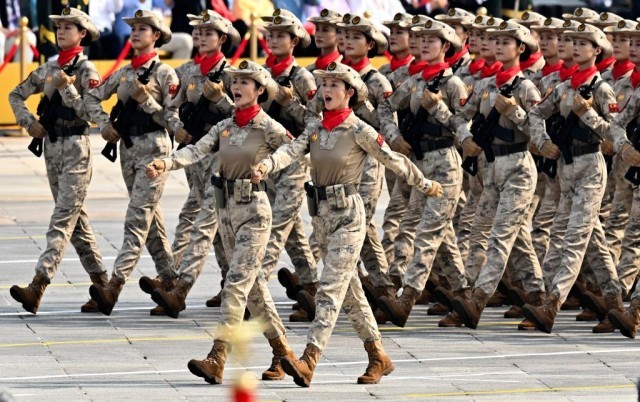 民兵方队全部由女民兵组成。这是民兵首次亮相以纪念抗战胜利为主题的阅兵活动。