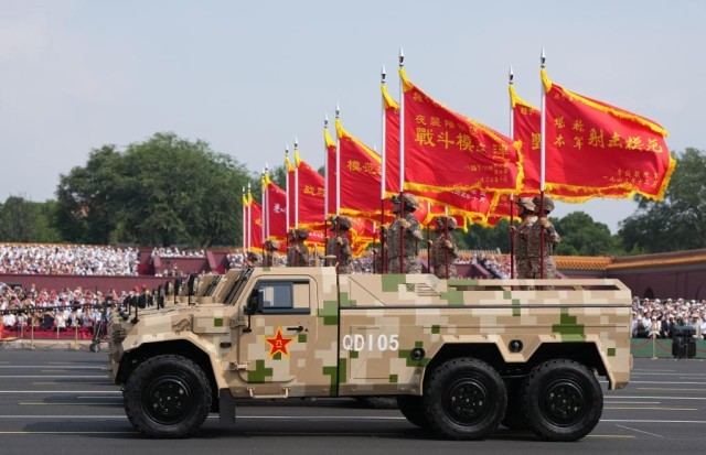 9月3日,纪念中国人民抗日战争暨世界反法西斯战争胜利80周年大会在北京隆重举行。这是民兵方队接受检阅。新华社记者 郭昱 摄