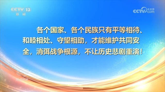纪念中国人民抗日战争暨世界反法西斯战争胜利80周年,不仅为了铭记历史、缅怀先烈,更是为了牢记历史的启迪和教训,避免重蹈覆辙。经历过战争的人们,更加懂得和平的宝贵。二战的战火曾遍及亚洲、欧洲、非洲、大洋洲,军队和民众伤亡超过1亿人,成为人类记忆中难以磨灭的伤痛。系列讲话中,习近平总书记多次提到“和平”二字,指出:“正义的信念不可动摇,和平的期盼不可阻遏。”“各个国家、各个民族只有平等相待、和睦相处、守望相助,才能维护共同安全,消弭战争根源,不让历史悲剧重演!”