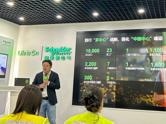冒飞飞介绍说,中国研发中心已经进入向全球进行人才输出、产品输出和技术输出的全新发展阶段。施耐德电气在华已建成30家工厂和物流中心,包括15家国家级绿色工厂和2家世界级“灯塔工厂”,并携手1600多家核心供应商,构建了强韧、高效的端到端绿色供应链体系。本土化供应链确保了施耐德电气植根中国、服务用户的能力,集团在中国的30家工厂和物流中心可以“无缝衔接”全球资源;同时,中国供应链的本地采购率达到90%以上。