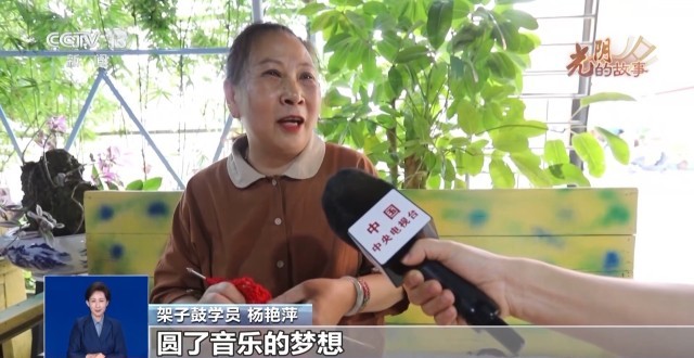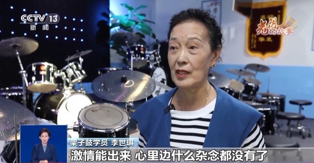 架子鼓学员 陈树仙:打架子鼓我们想都没想过,结果一来,感觉太好了,什么烦恼都没有了。