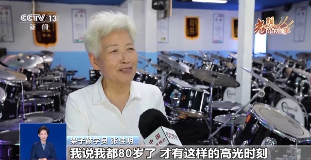 架子鼓学员 张佳明:我自己在我的日记里写,我都80岁了才有这样的高光时刻,就是这一句话。
