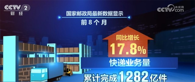 国家邮政局:今年1至8月我国快递业务量同比增长17.8%