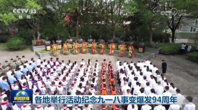央视网消息(新闻联播):九一八事变爆发94周年之际,各地举行多种活动,传承和弘扬伟大抗战精神,铭记历史、缅怀先烈、珍爱和平、开创未来。