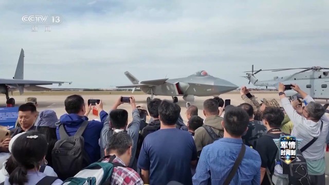 魏东旭:歼-20进行地面静态展示,军迷朋友、航空爱好者可以和它进行近距离接触,可以让大家看到我们国产隐身战斗机很强的作战能力。它是实机,近距离看非常有视觉冲击力。