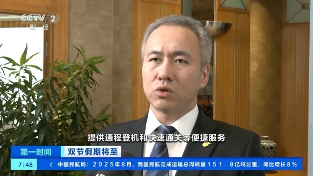 四川航空地服部天府分部高端客户室经理 杨琴:预售情况来看,今年旅客购票时间较往年明显提前,9月30日和10月1日为节前出行的高峰。成都飞往北京、深圳、杭州等地的部分航班客座率已经达到了80%,敦煌、阿勒泰等西北航点机票已经基本售罄。