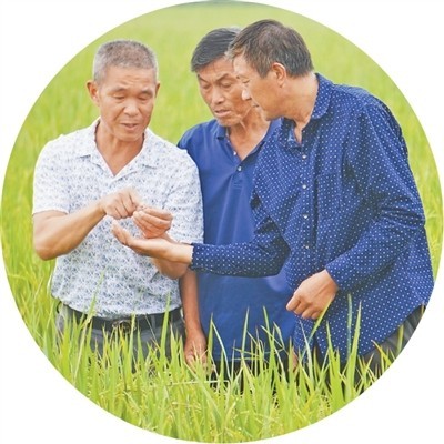 湖北洪湖市,农技员(右一)做田间指导。