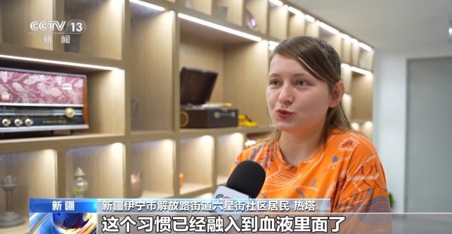 新疆伊宁市解放路街道六星街社区居民 热塔:我们各民族之间,现在其实就像一家人一样,这个习惯已经融入血液里面了。