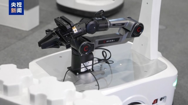 在自主移动机器人赛项记者看到,随着一串代码输入,几台机器人挥动机械臂,抓取、抬升,一件件模拟水果被快速摘下运送到指定地点。