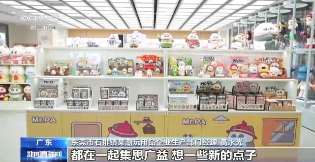 东莞市石排镇某潮玩用品企业生产部门经理 高永光:现在的产品更新换代特别快,我们基本上每周都要开两三次会,都在一起集思广益,想一些新的点子。每一年都会绞尽脑汁研发几十款新的产品。