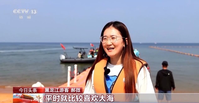 黑龙江游客 郝微:很刺激,平时就比较喜欢大海,体验了一把速度与激情,工作压力都没了,很开心。