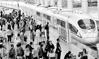 10月7日,旅客在河南洛阳龙门站乘车。新华社发