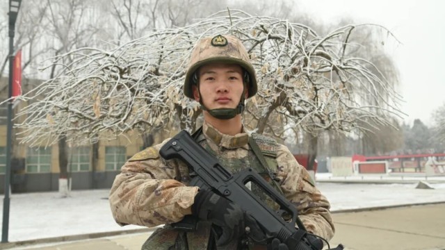 2025年,“刘老庄连”在入连仪式上为新兵授枪。
