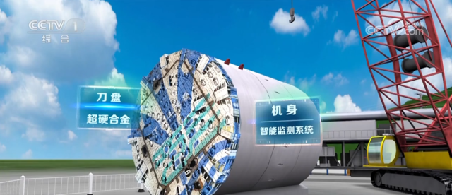 目前,引江补汉工程正在加速掘进。通过虚拟制作技术,您现在看到的就是正在地下工程里掘进的“江汉平安”号盾构机。它全长约135米,直径达10.23米,相当于3层楼高,总重量超过2000吨。为应对复杂地质,“江汉平安”号装备了多项“黑科技”。比如,刀盘采用超硬合金,无坚不摧;机身搭载智能监测系统,实时预警水压与岩层的变化。正是这些“绝技”,让它在地下200米深处能够“挥斥方遒”。