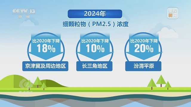 为了天更蓝,水更清,这五年,累计完成散煤治理4100万户;淘汰高排放车辆近2000万辆。2024年京津冀及周边地区、长三角地区、汾渭平原细颗粒物(PM2.5)浓度分别比2020年下降18%、10%和20%;全国3000多条地级及以上城市黑臭水体基本消除,县级城市黑臭水体消除比例超过90%。