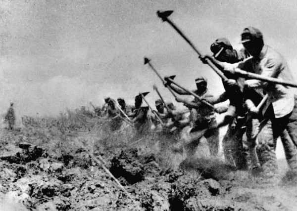 八路军三五九旅在南泥湾开荒生产。