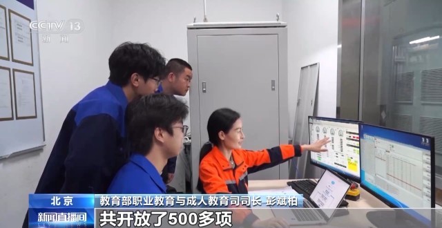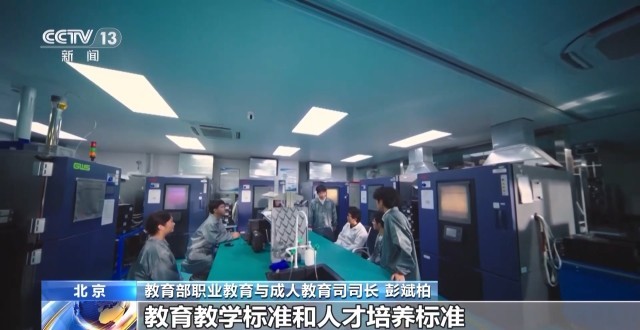 教育部职业教育与成人教育司司长 彭斌柏:我们这次改革共开放了500多项行业企业最新技术标准、岗位规范和生产工艺流程,确保教材建设与产业发展同频同步,比如说《智能车间集成与应用》这门教材,我们就搭建了虚拟的智能车间,让学生身临其境,很好地解决了传统学生实习实训当中做不了、做不好、做不到,也做不实的难题。