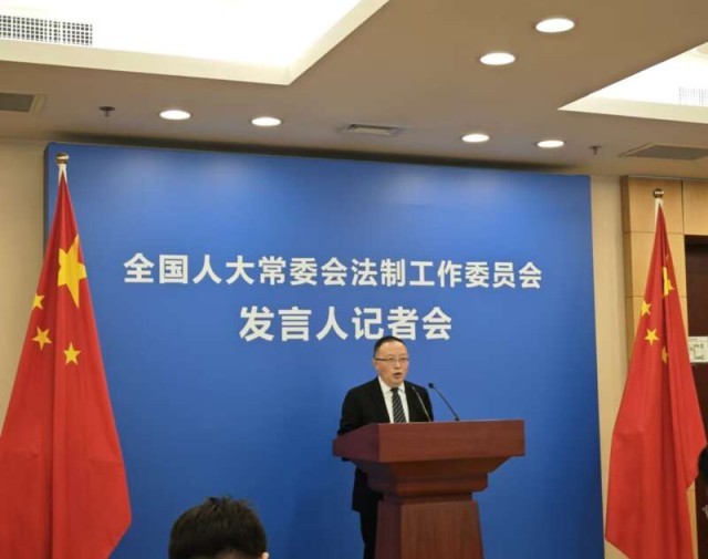 全国人大常委会法制工作委员会发言人王翔在记者会上 中青报·中青网记者 刘言/摄