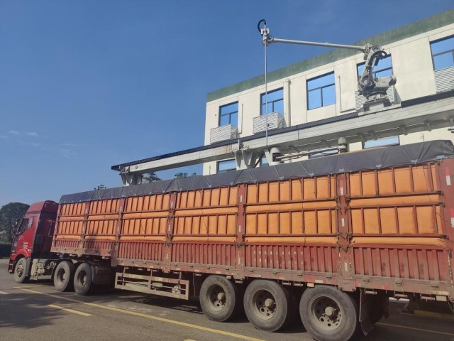 10月16日,在中粮(成都)粮油工业有限公司面粉厂生产线上,一袋袋面粉被打包入箱。新华网 李然 摄