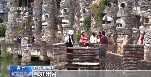 咧嘴憨笑、表情夸张,这些神态各异、奇趣搞怪的石像前围满了拍照打卡的年轻人,这里是贵州贵阳夜郎谷景区一处抽象雕塑艺术空间。