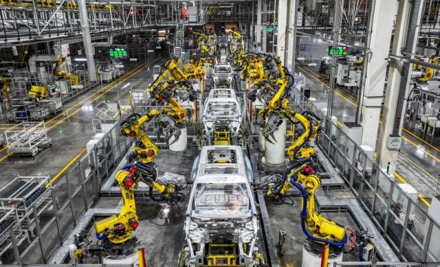 位于重庆市两江新区的赛力斯汽车超级工厂拍摄的自动化生产作业现场。 新华社记者 王全超 摄