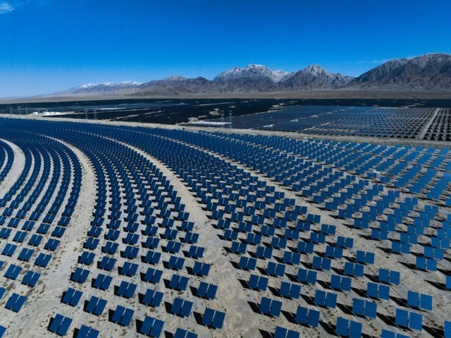 青海省海西蒙古族藏族自治州德令哈市光伏(光热)产业园的光热电站。新华社记者 张龙 摄
