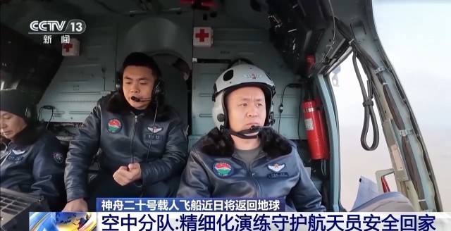 神舟二十号搜救回收任务空中分队 王雯娟:设置了双机长、双机械师,每一架飞机配备了领航员。我们所有机长的飞行小时都在4000小时左右,他们都曾多次参加神舟飞船的搜救回收任务,具有相当丰富的飞行经验和任务经历。