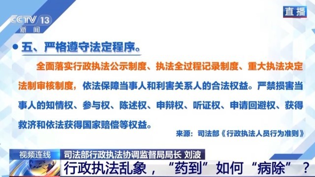 司法部行政执法协调监督局局长 刘波: 行政执法三项制度是我们国家从执法源头到过程,再到结果的一个程序性规定。